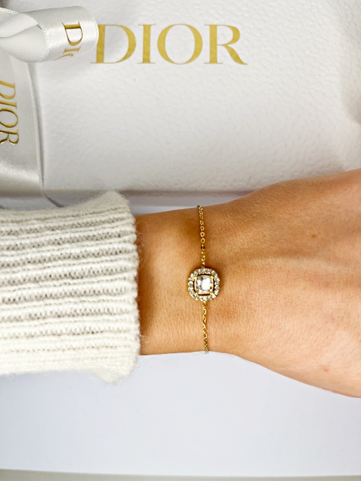 Bransoletka z kwadratowym diamencikiem wykonana jest ze stali chirurgicznej.