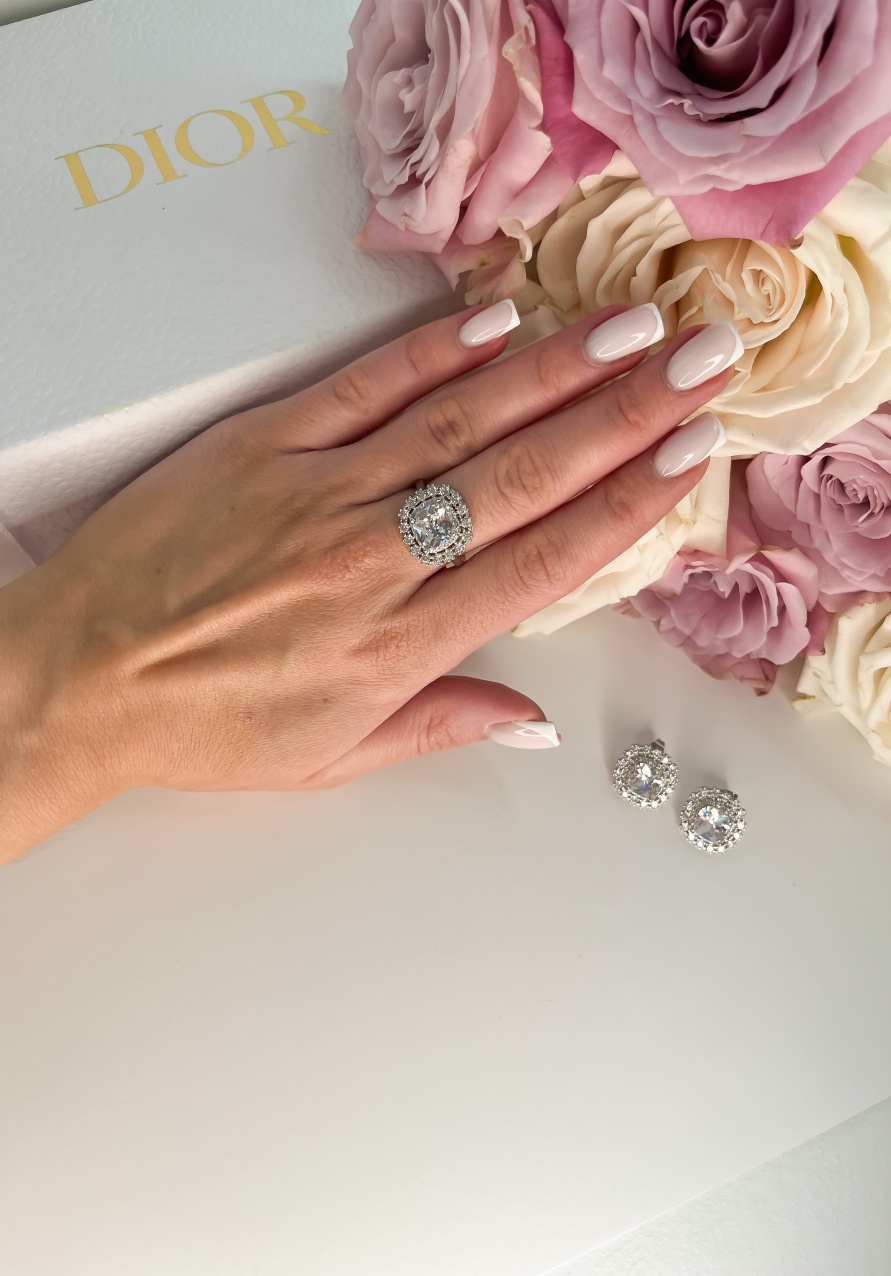 Przepiękna biżuteria z diamencikami wykonana jest ze stali chirurgicznej w kolorze srebrnym.