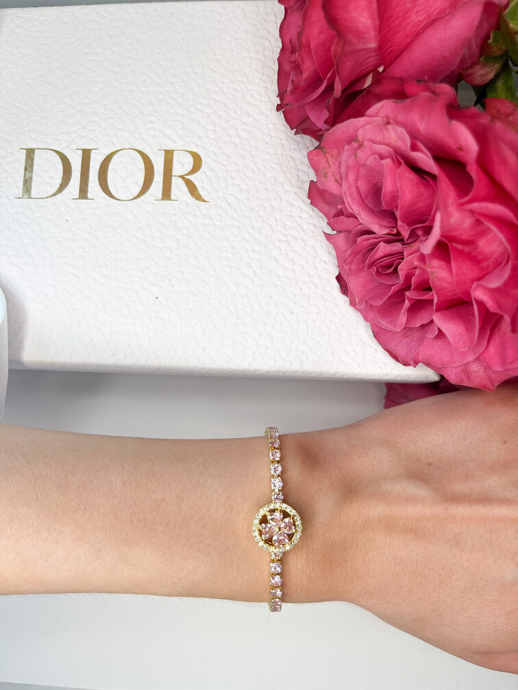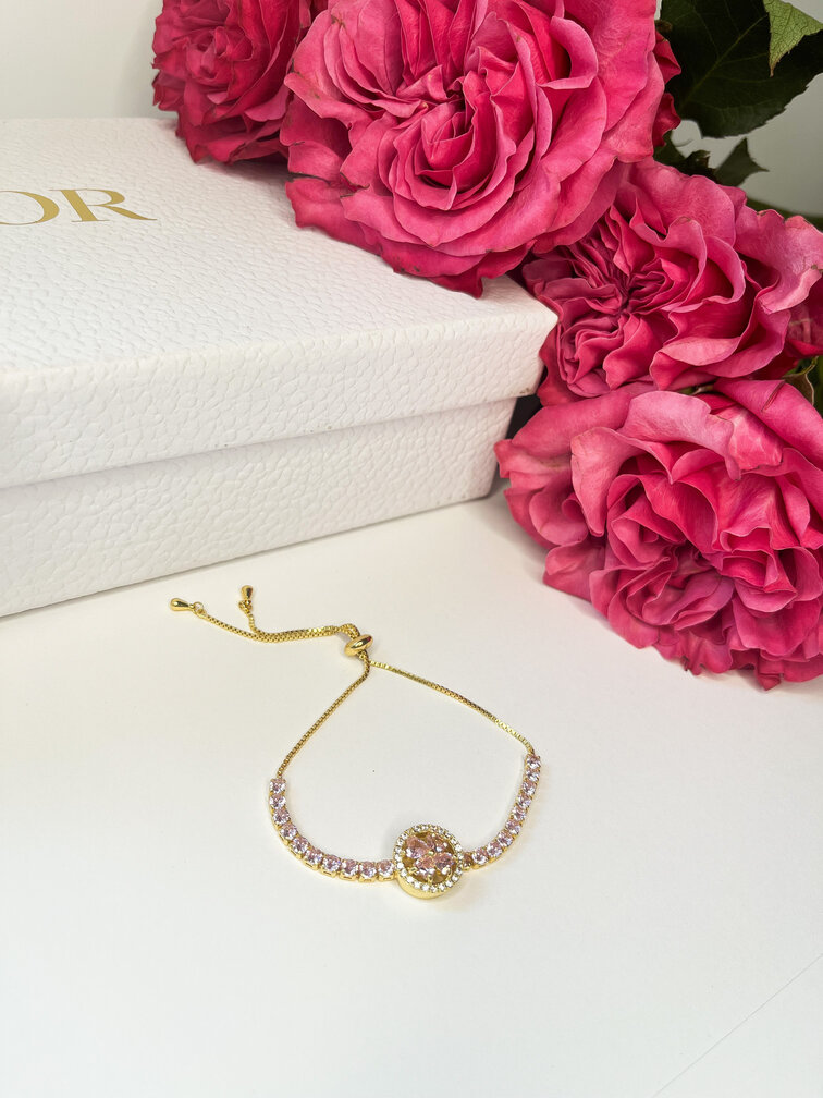 -Regulowany naszyjnik z diamencikami i różowym kwiatkiem,