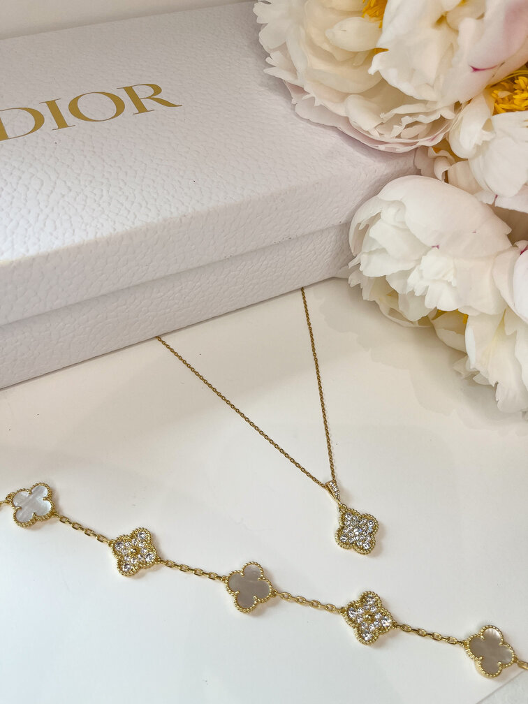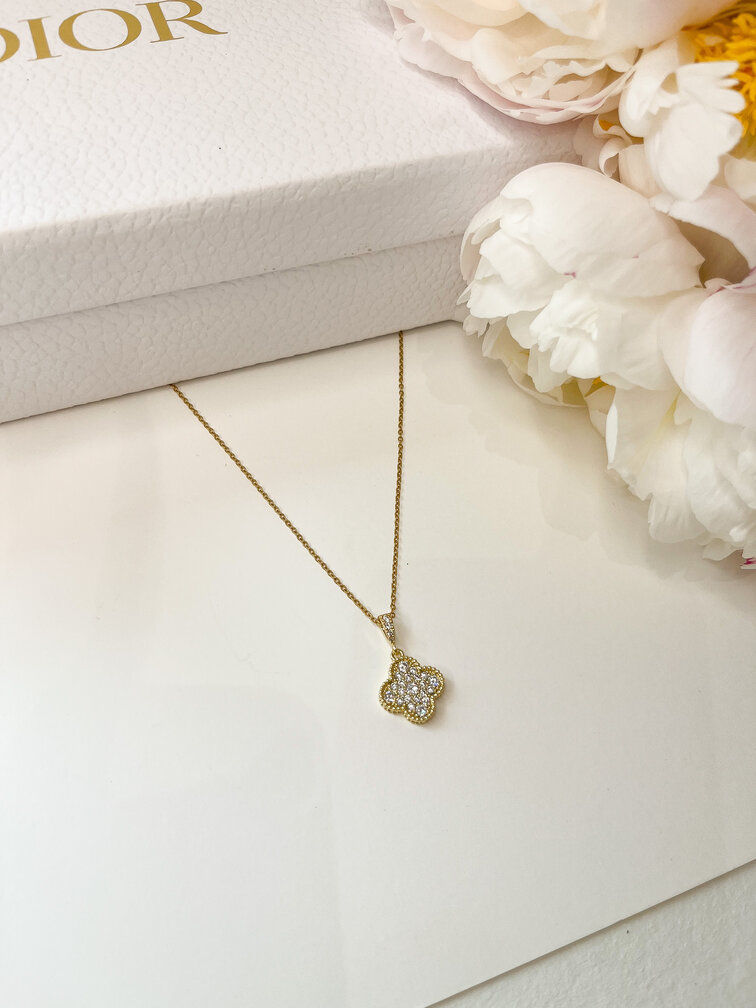 Naszyjnik z motywem naszej bestsellerowej koniczynki, wypełniony diamencikami wykonany jest ze stali chirurgicznej.