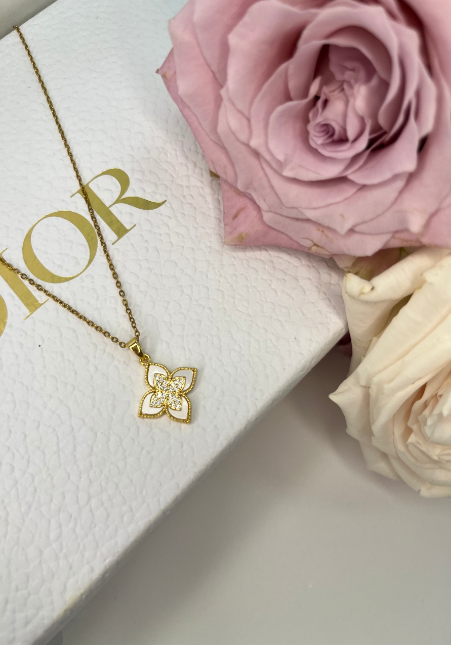 Sam kwiat otoczony jest diamencikami oraz masą perłową.