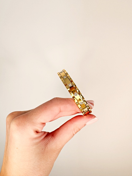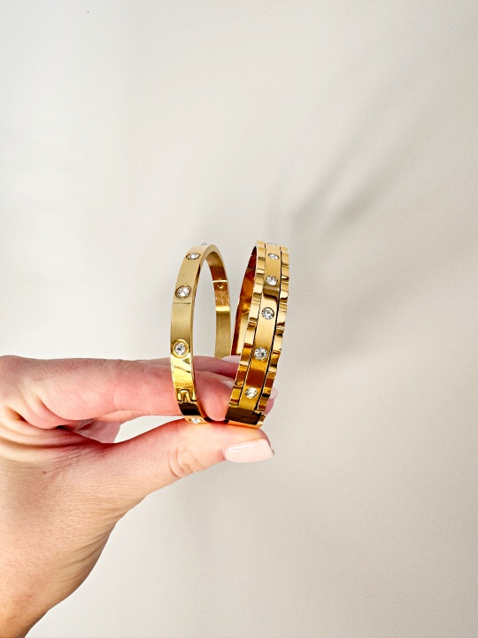 Bransoletka wykonana jest ze stali chirurgicznej koloru złotego.