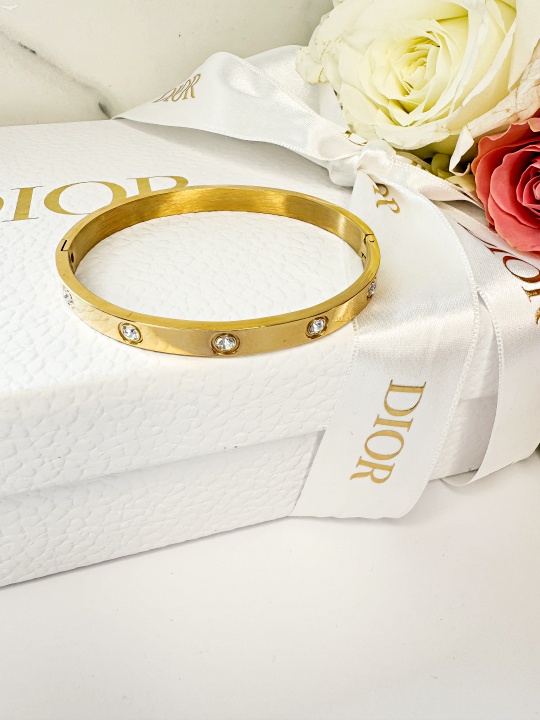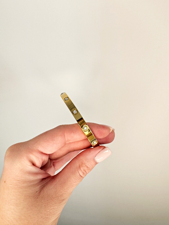 Bransoletka wykonana jest ze stali chirurgicznej koloru złotego.